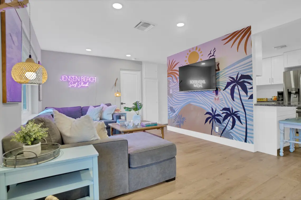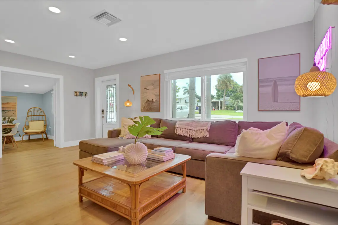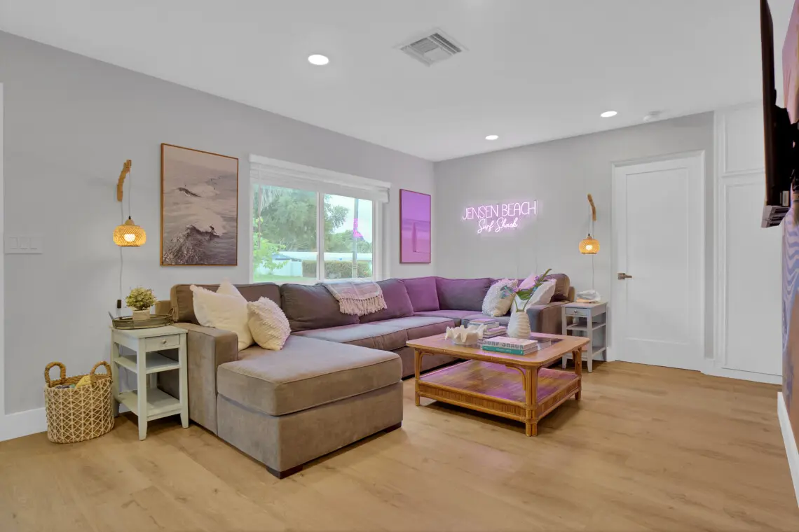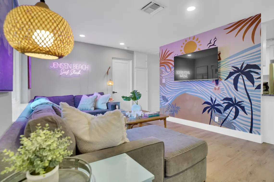 Escape to this vintage surf shack-inspired ranch house, a perfect Jensen Beach vacation rental for friends, families, or couples seeking a memorable coastal getaway. Professionally designed for a five-star experience, this home accommodates 6 guests and welcomes pets, making it an ideal choice for all travelers.